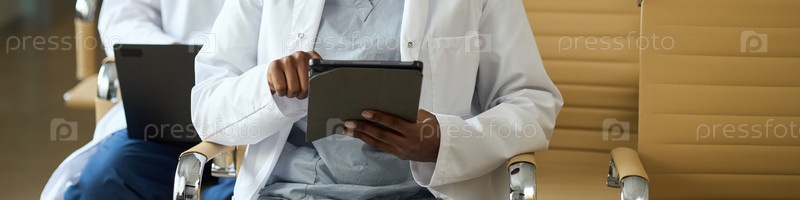 Доктор, использующий таблетки для медицинской документации