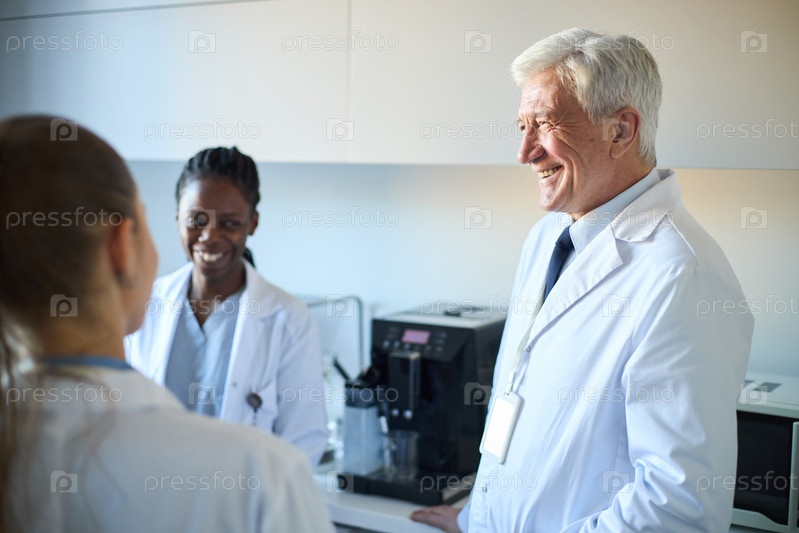Медицинские специалисты, носящие лабораторные пальто в больничной обстановке