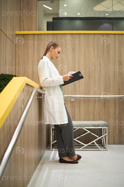 Профессиональный медицинский рецензирующий документы в коридоре