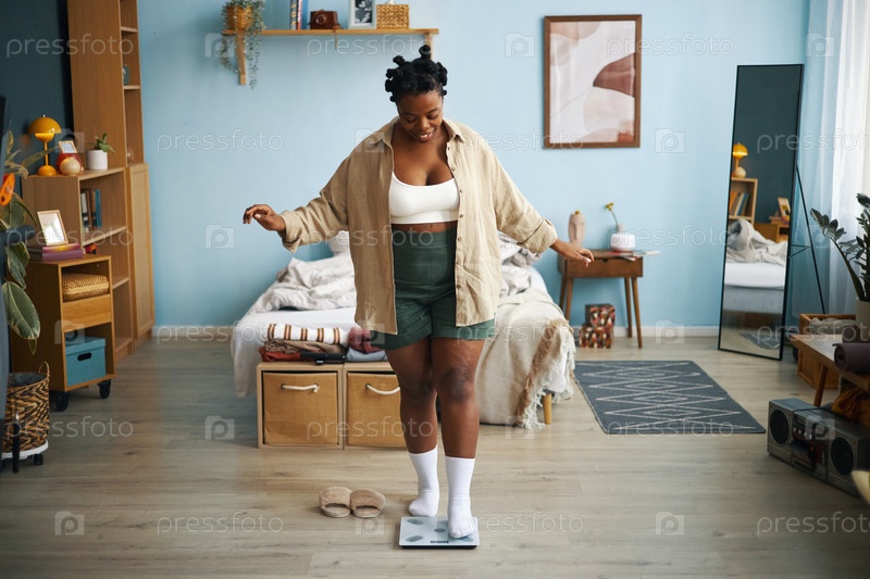 Измерение веса в уютной комнате жилого помещения