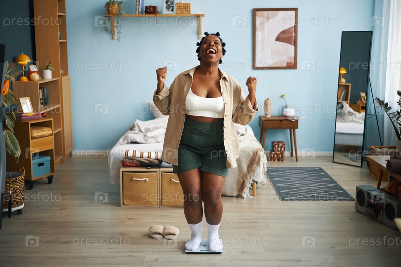 Празднование достижения похудения в уютной спальне