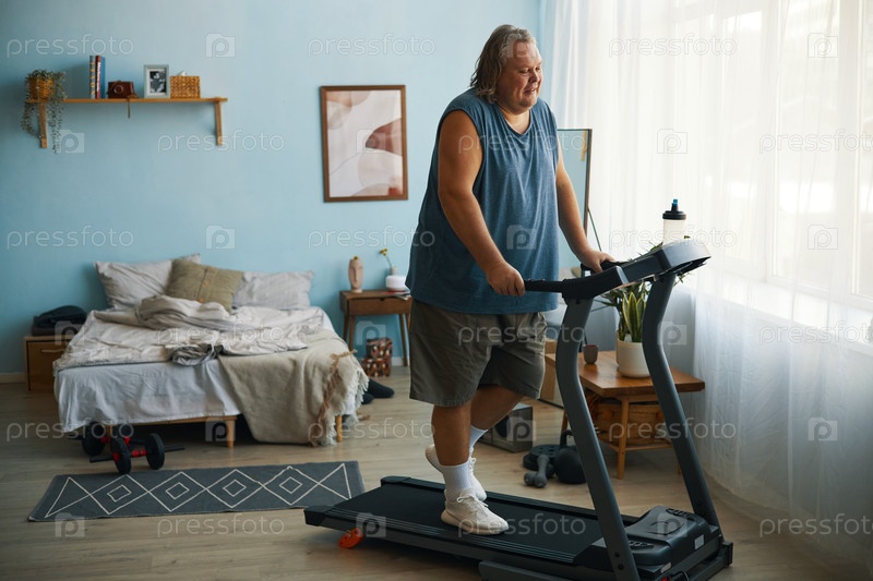 Упражнения на беговой дорожке в уютной обстановке спальни