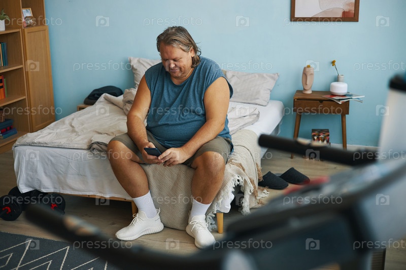Упражнение мужчина сидит на кровати в спальне
