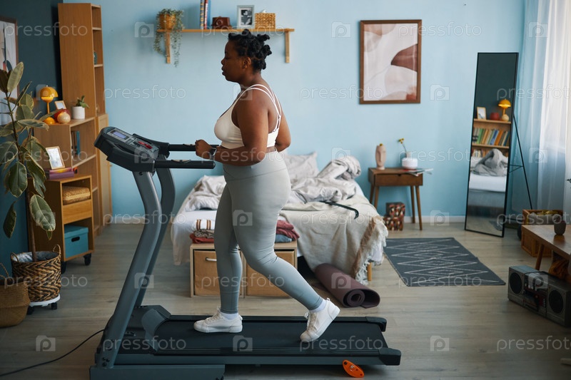 Упражнения на беговой дорожке в уютной гостиной