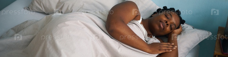 Спящая афроамериканская женщина со скошенными волосами
