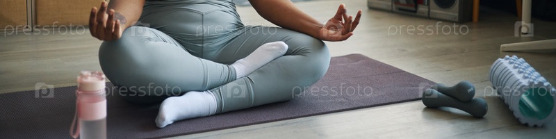 Практика медитативной позы йоги на тренажерном коврике