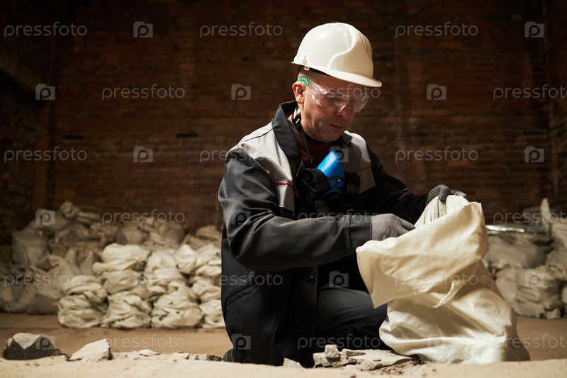 Усталый работник убирает беспорядок
