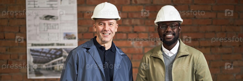 Заголовок с Бирациальными рабочими на строительной площадке