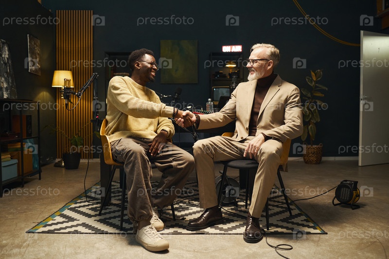 Два мужчины приветствуют друг друга в студии записи