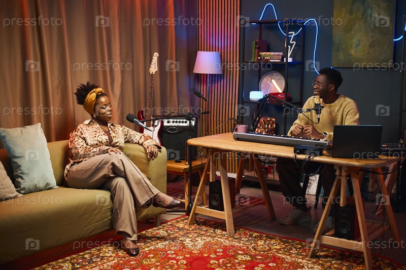 Люди разговаривают во время онлайн-подкаста