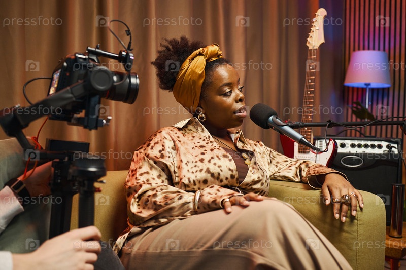 Запись подкаста в студии женщина