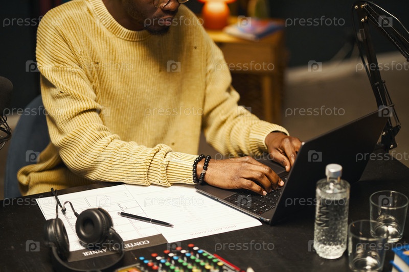 Подкаст завязывания для его программы мужчина