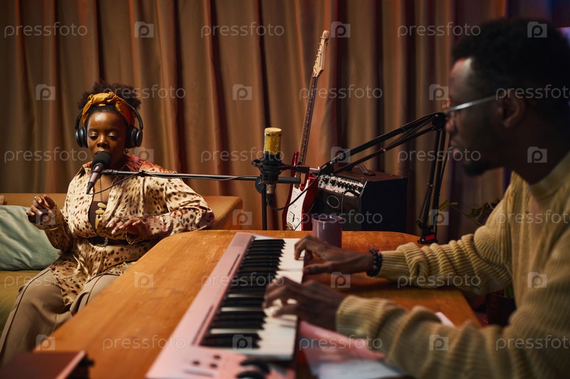 Женщина поет песню во время онлайн-подкаста Woman