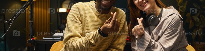 Молодые люди жестикулируют знаками любви