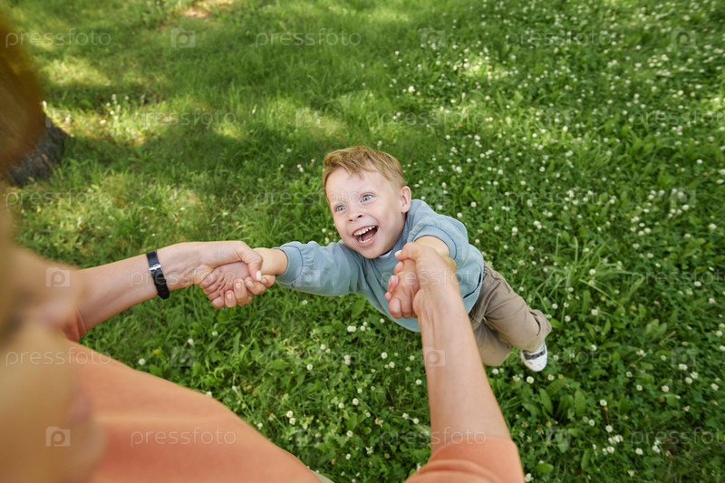 POV матери, играющей с маленьким сыном в парке
