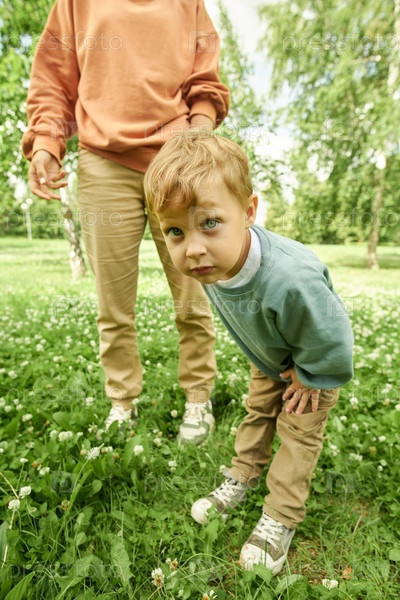 Мальчик смотрит в камеру с любопытством