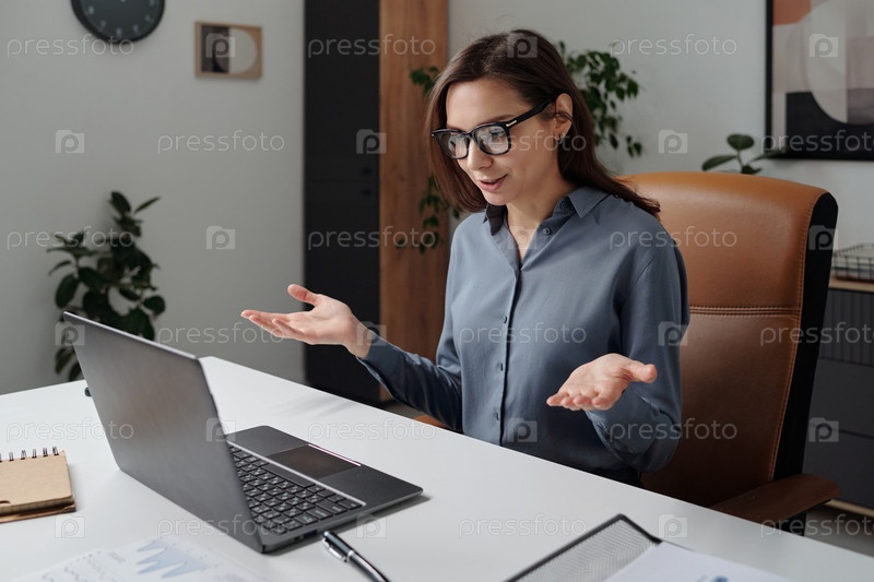 Взволнованная женщина выступает на онлайн-встрече