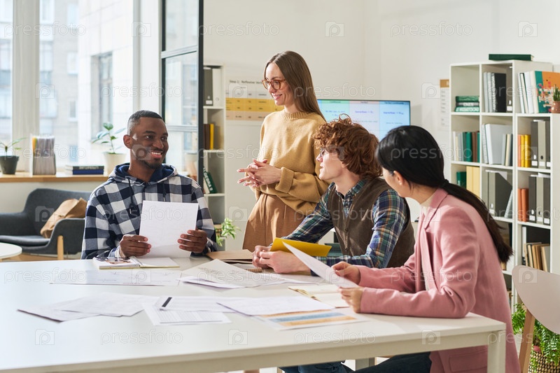 Улыбающиеся ученики учатся иностранным языкам в классе