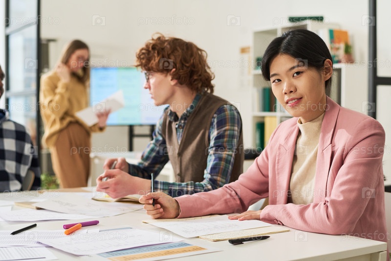 Портрет азиатской женщины, изучающей иностранные языки в классе