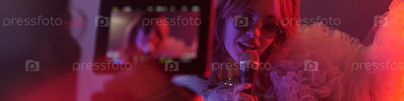 Съемки Выступление молодой женщины, поющей Header Director Image