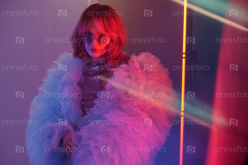 Молодая женщина смотрит на камеру и позирует уверенно во время видеосъемки