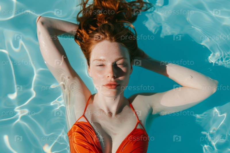 Отдых в бассейне с закрытыми глазами в солнечный день