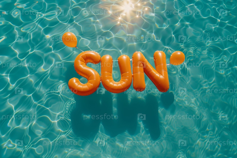 Плавучие надувные буквы, образующие 'Солнце' в бассейне воды