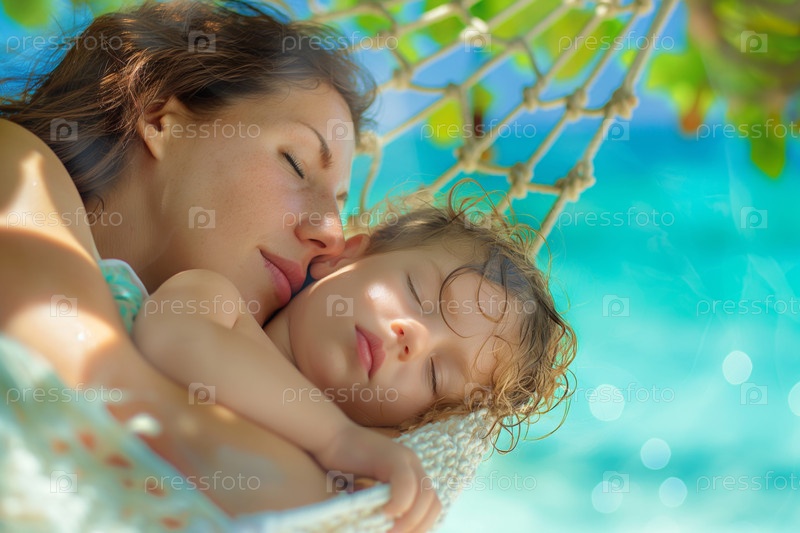 Расслабление на гамаке со спящим ребенком Tropical Water