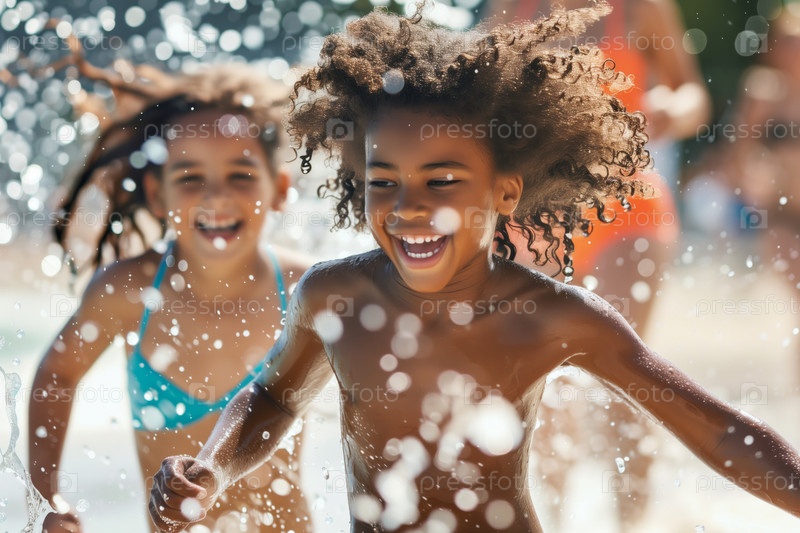 Дети наслаждаются солнечным днем в аквапарке Splash Zone