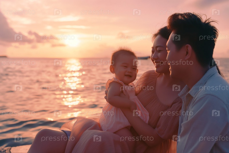 Наслаждайтесь семейным временем у океана на восходе солнца