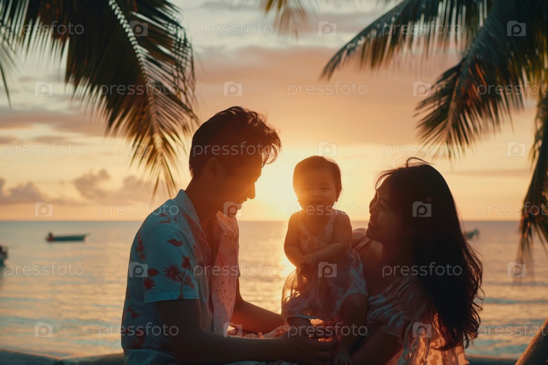 Наслаждаться закатом солнца на тропическом пляже в Золотой час