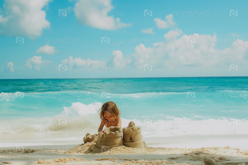 Песчаный замок у пляжа под зданием Blue Sky Building