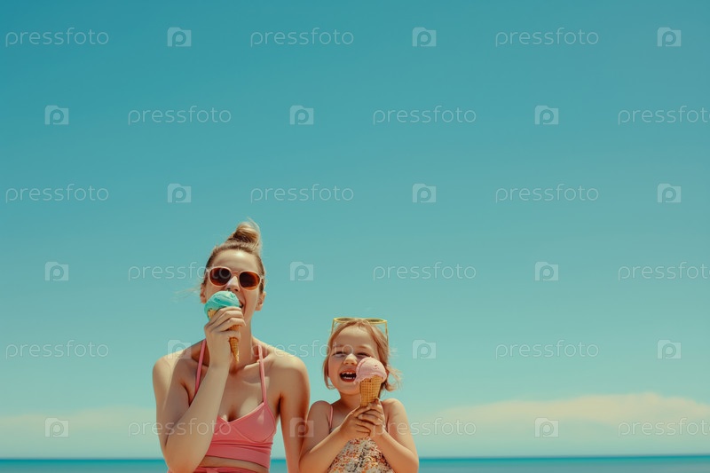 Наслаждаясь мороженым на солнечном пляже в летний день