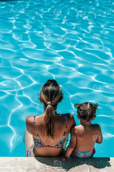 Отдых у бассейна с маленьким ребенком среди кристально чистой воды
