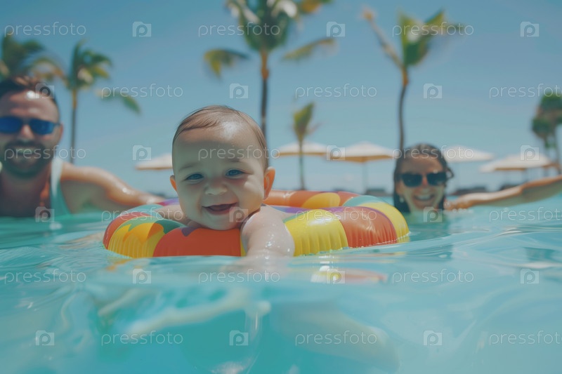 Наслаждаться семейным временем в бассейне с помощью яркой надувной трубы