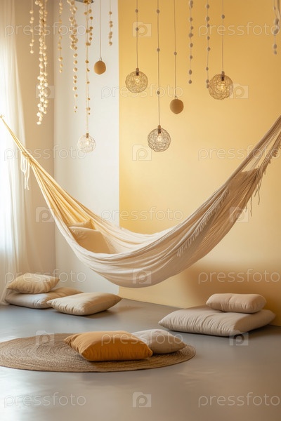 Висячий гамак в солнечном уютном жилом пространстве