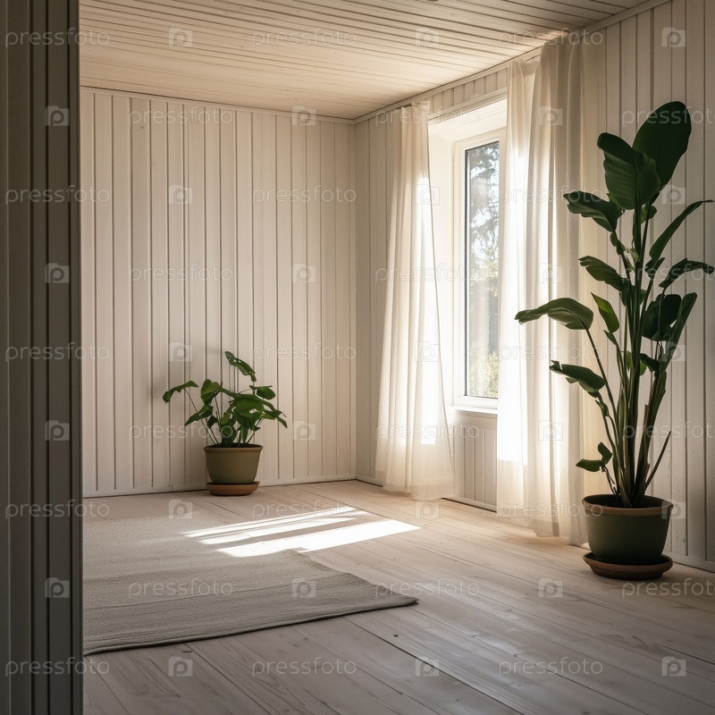 Спокойная гостиная с комнатными растениями и естественным светом