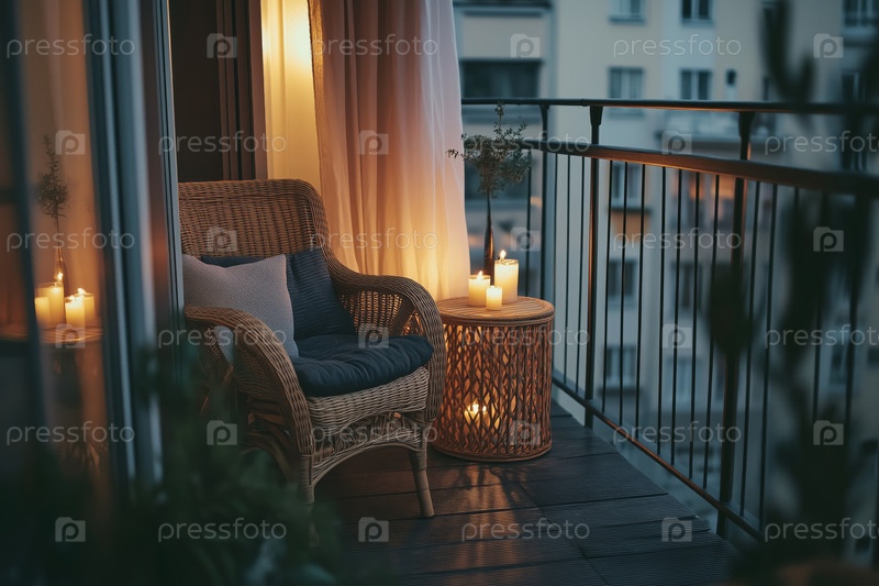 Расслабляющий вечер на городском балконе при свечах