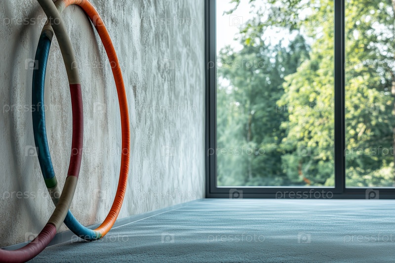 Солнечная комната с гула-хупами, опирающимися на стену