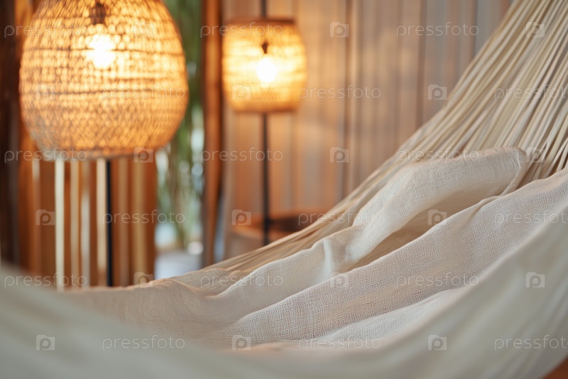 Расслабляющий гамак с теплым освещением и уютной атмосферой