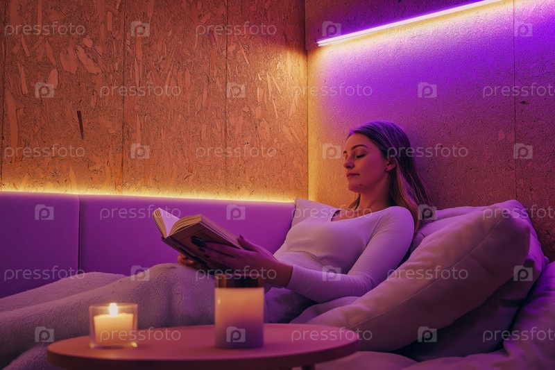Книга для чтения в уютной комнате с теплым освещением