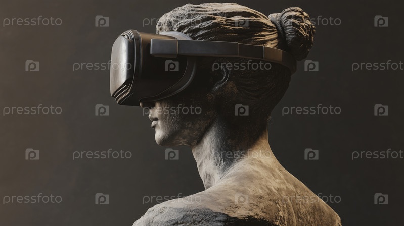 Исследование виртуальной реальности со скульптурной фигурой в профиле