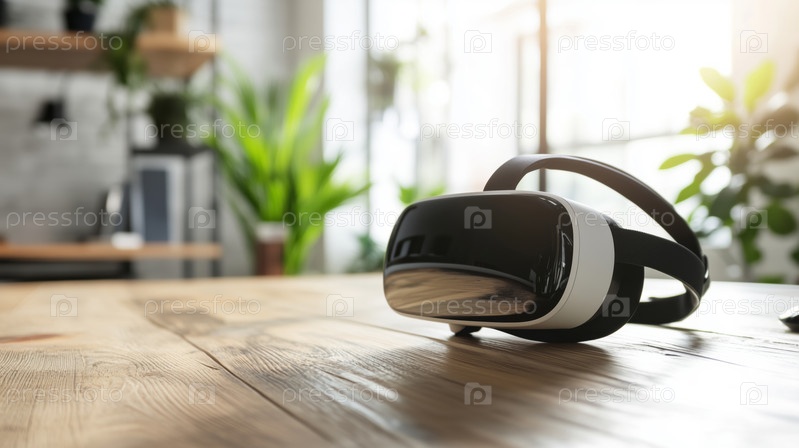 Гарнитура виртуальной реальности на деревянном столе в офисной обстановке