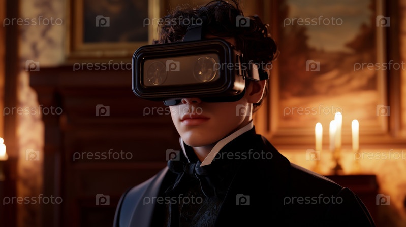 Мужчина, носящий гарнитуру виртуальной реальности в Викторианской комнате