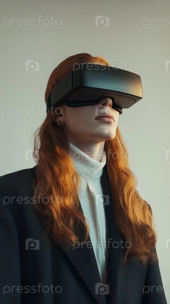 Женщина, носящая гарнитуру VR, погрузилась в виртуальную реальность
