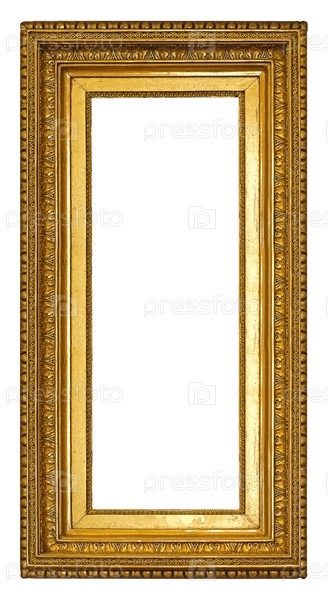 Панорамный золотой каркас для картин, зеркал или фото изолирован на белом фоне. Элемент дизайна с обрезкой пути