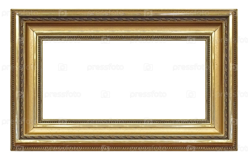 Панорамный золотой каркас для картин, зеркал или фотографий, изолированных на белом фоне