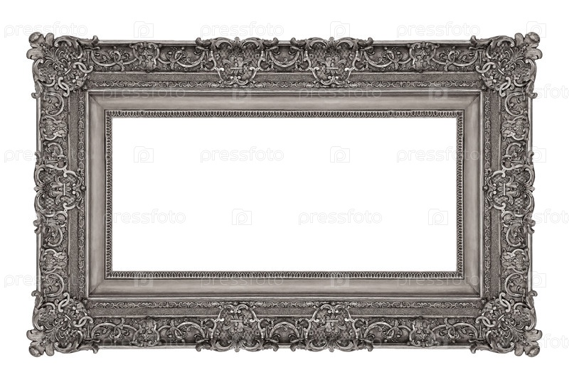 Панорамная серебряная рама для картин, зеркал или фотографий, изолированных на белом фоне. Элемент дизайна с обрезкой пути