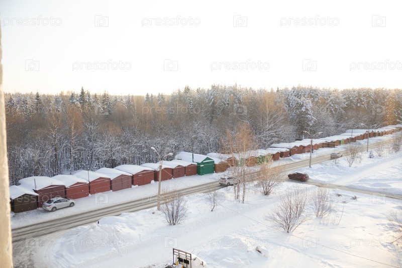 Вид из окна зимнем утром в начале весны