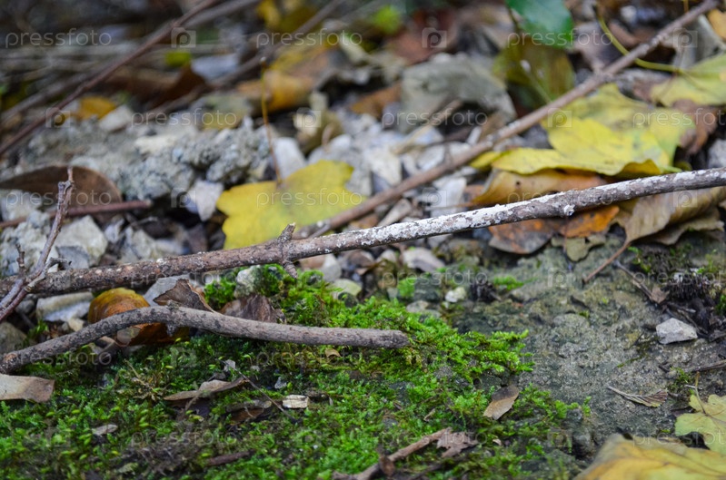 Россия, Краснодарский край, Сочи, Ноябрь 2024. Упавшая ветка. Дерево во мху